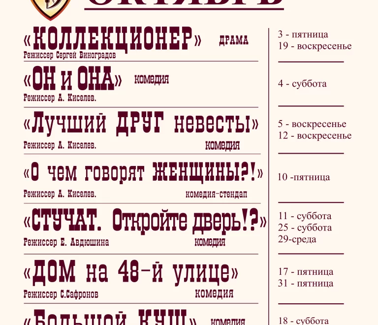 Афиша на ОКТЯБРЬ 2025